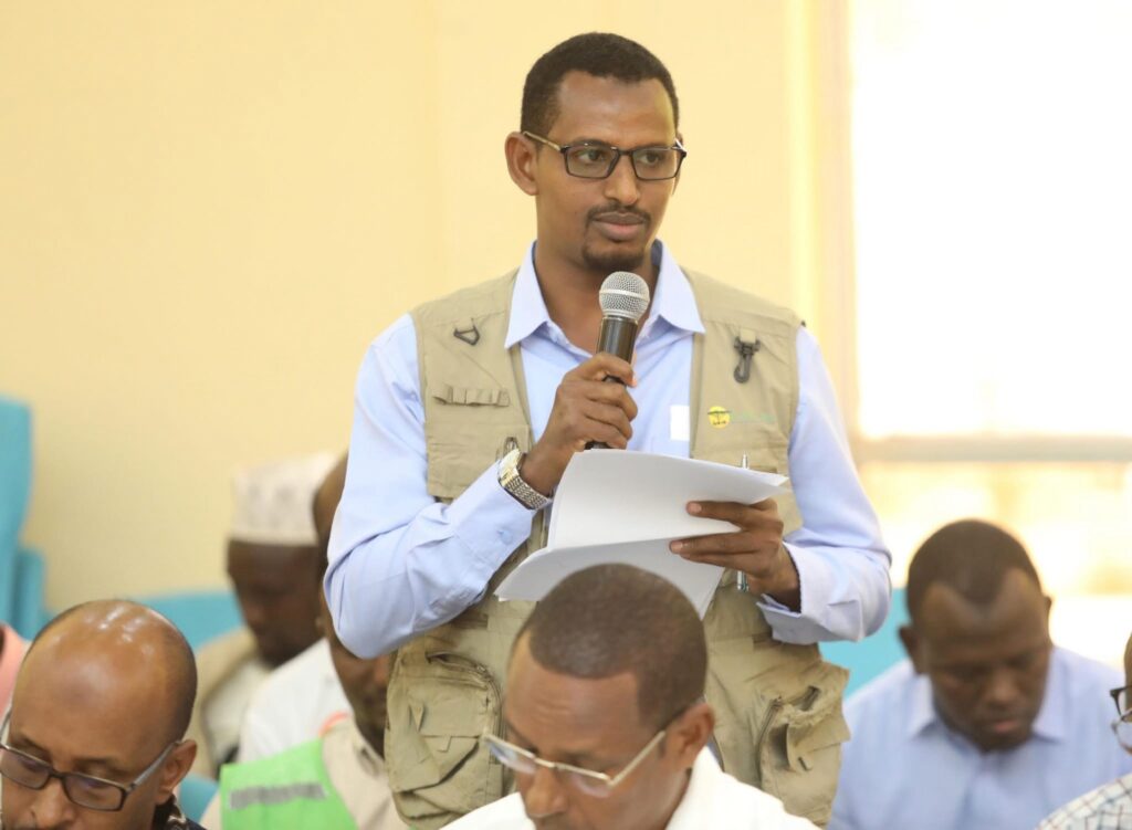 RACIDA Project Manager Abdisalan Muthow, outlining RACIDA’s drought response interventions during the County Steering Group (CSG) meeting.